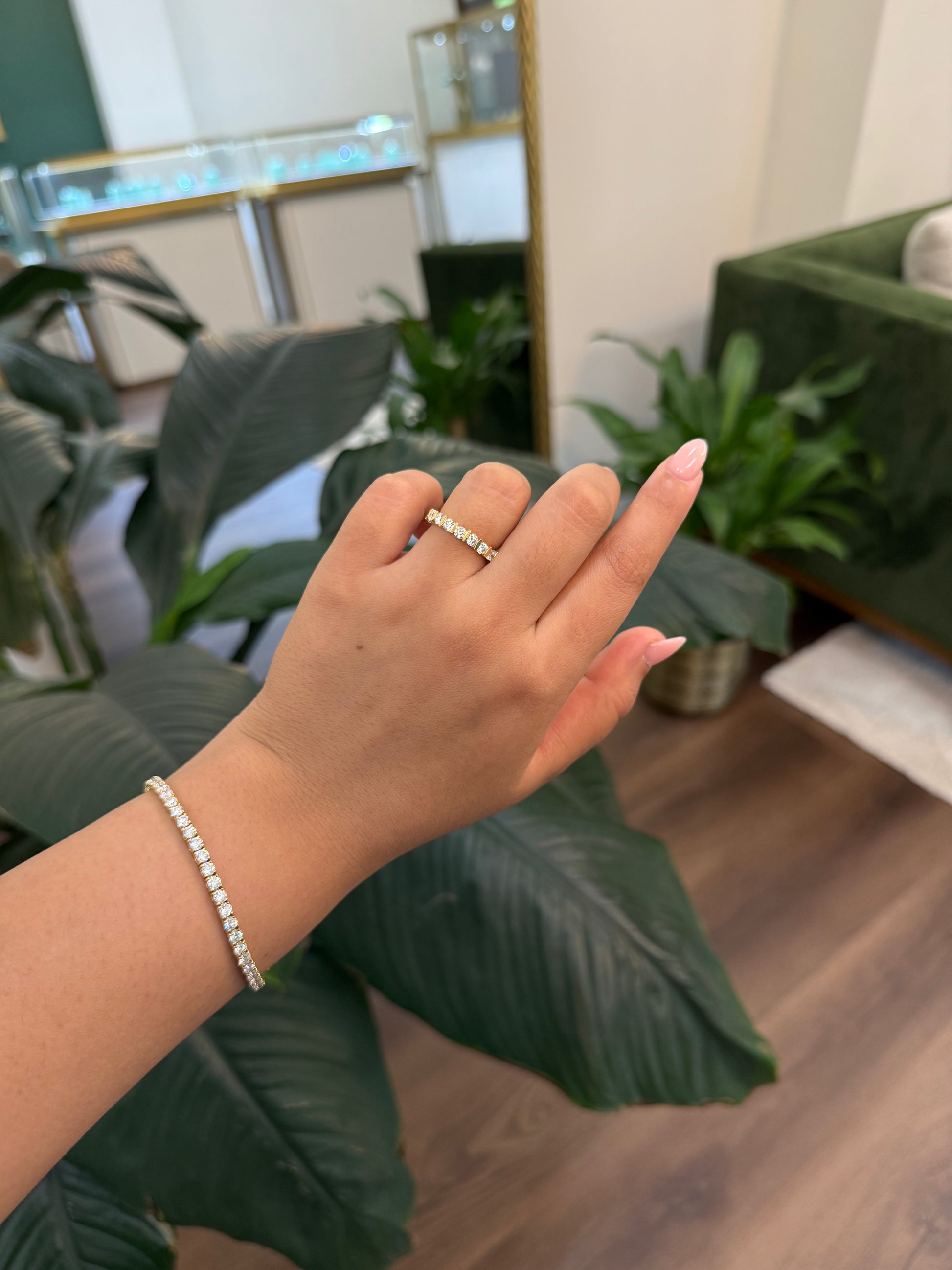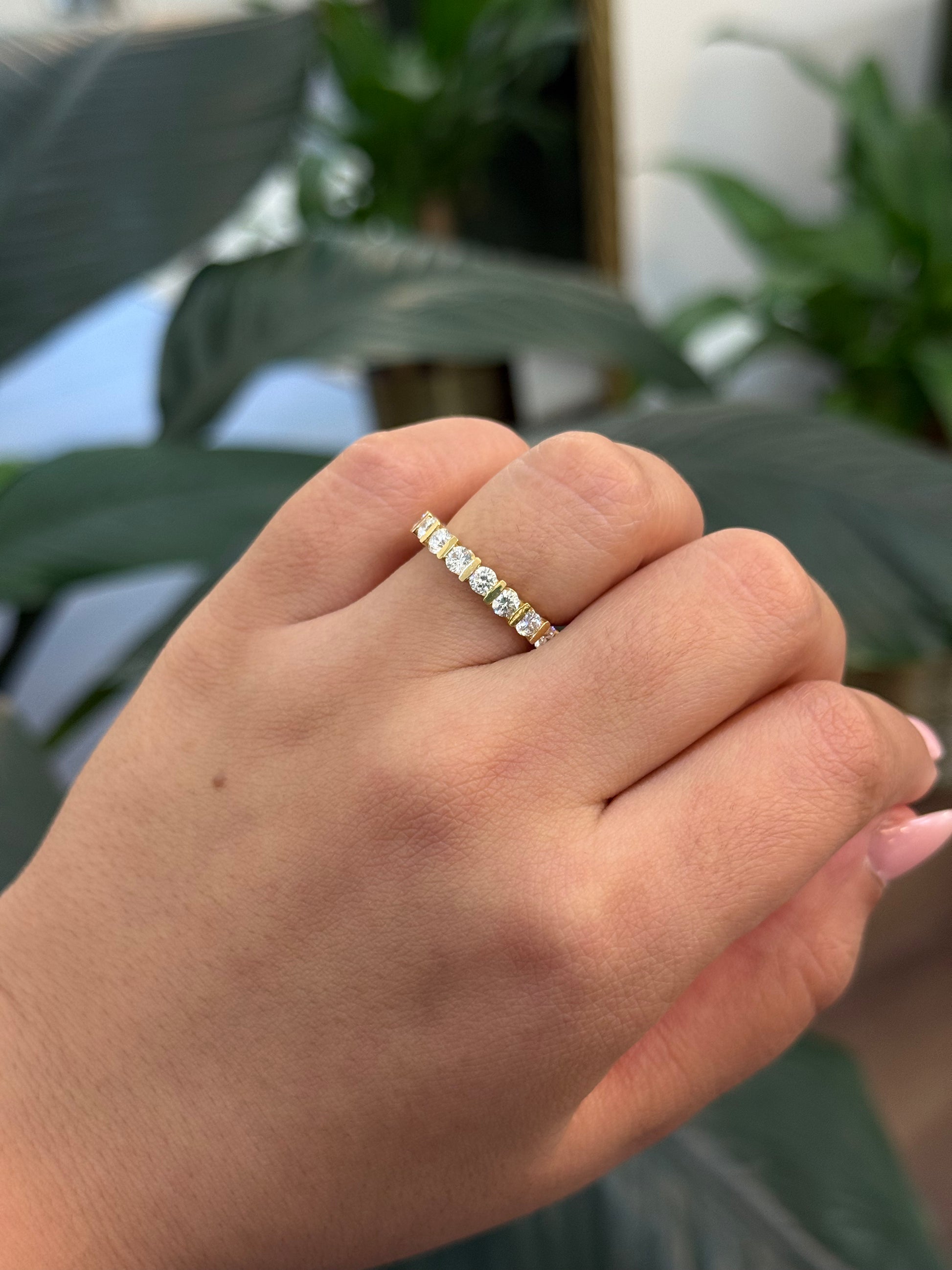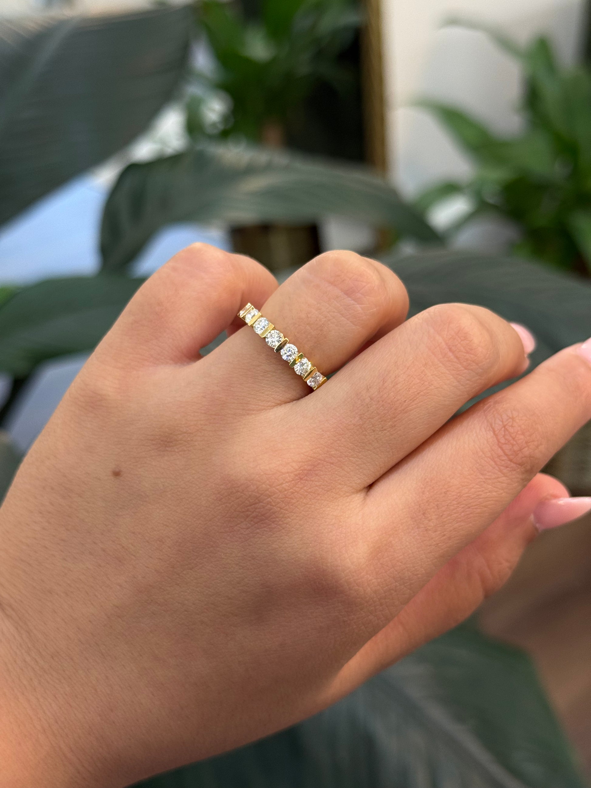 Arabella is a beautiful wedding ring featuring round cut stones set in an exquisite full-circle shared bar setting.