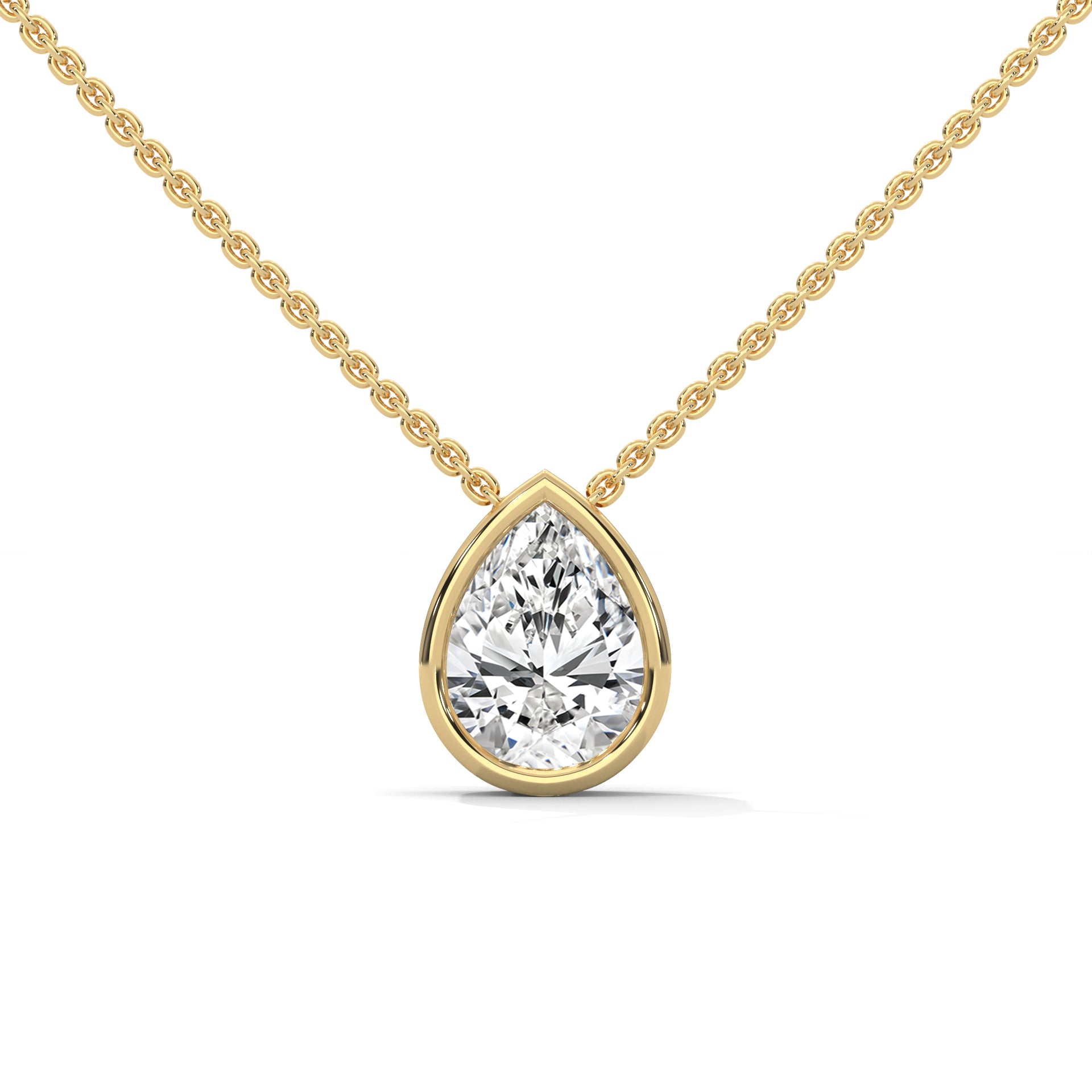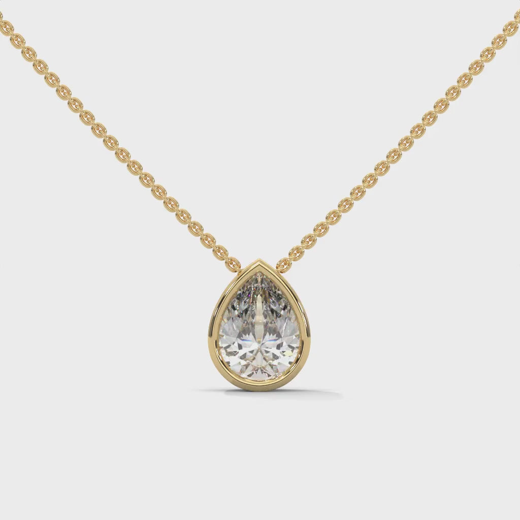 Mira is a timeless staple featuring a Pear Lab created diamond on a 18K solid gold Bezel setting. Refined to the core, our basket setting features an open back gallery inviting light in from all angles for maximum brilliance.